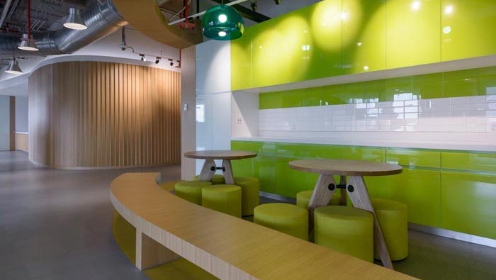 辦公區(qū)域的設(shè)計(jì):設(shè)計(jì)師在設(shè)計(jì)中為了將勞逸結(jié)合變?yōu)楝F(xiàn)實(shí),故此在設(shè)計(jì)的時(shí)候?qū)⑥k公、休息都加以具象,目的就是希望讓員工在這樣的空間之中,將勞逸結(jié)合轉(zhuǎn)入自己的工作之中,休息是為了更好的開(kāi)始,這是設(shè)計(jì)師對(duì)于休息的感悟,也能充分展現(xiàn)企業(yè)對(duì)于員工的關(guān)愛(ài)。