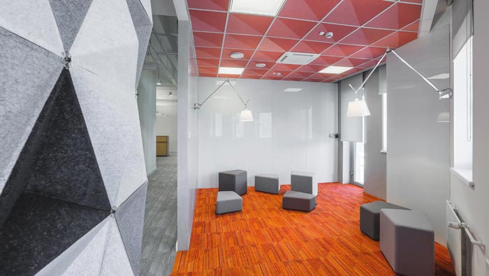 辦公區域的設計:此處是其中一個部門的辦公場地,設計師在辦公工位的設計中,將每一步部門按照不同的屬性分割在空間的每一個角落,這樣做好的好處就是保證為每一個員工都提供優質的辦公工位,不會出現人員扎堆的想象發生,即保證了空間的通暢也為每一個部門都保留了自己的空間。