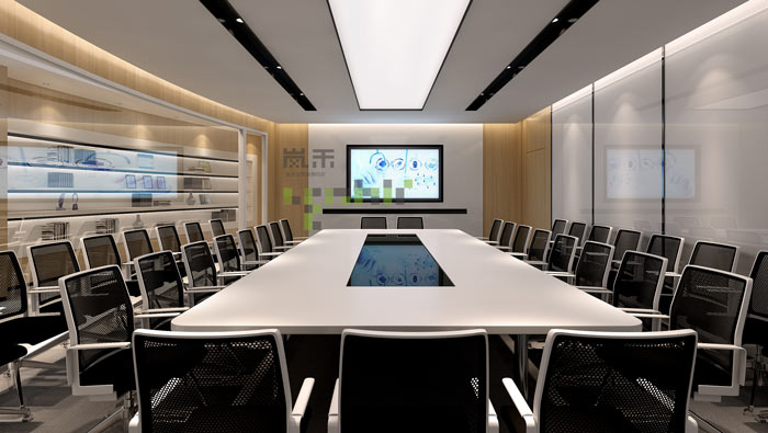 過濾公司辦公室大型會議室設計:這里集聚的是企業的核心人員,各種戰略在這里達成,這里相當于企業的戰略平臺,設計師認為不同的空間兼具不同的使命,如此才能涇渭分明。