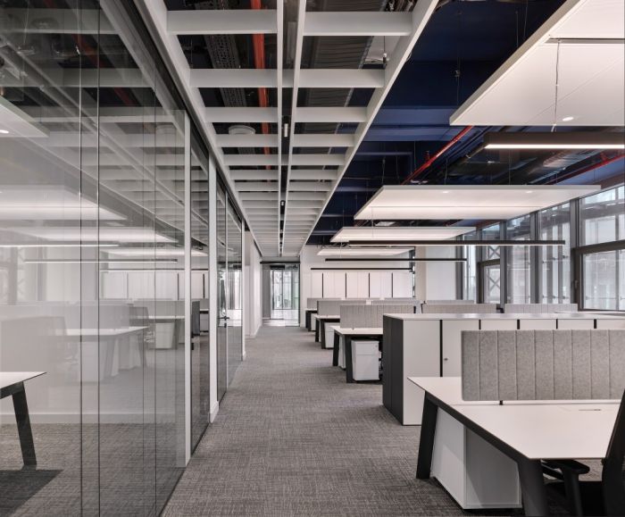 這是一個金融行業(yè)的辦公室,在這個3200方的辦公室中,公司在不同領(lǐng)域的相關(guān)部門被設(shè)計在一起,而工作空間則以線性規(guī)劃方案布置。