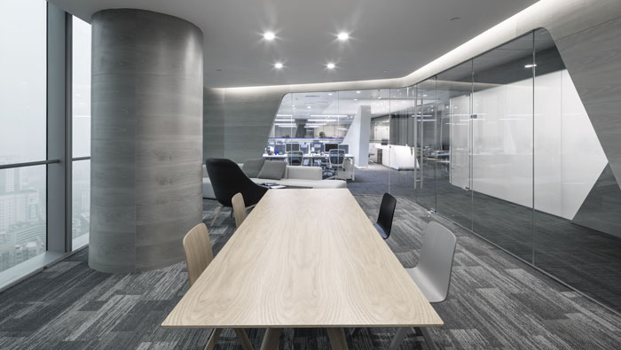 ? 會議室的設計:灰色的地毯加上柔柔的燈光,讓整個空間顯得格外輕松,灰色猶如似亮非亮,燈光代表似亮非亮已經(jīng)成為過去,這表示著事情已經(jīng)解決,設計師希望通過這樣巧妙的設計,為會議的開展提供一絲助力,讓人、空間、設計可以合為一體。