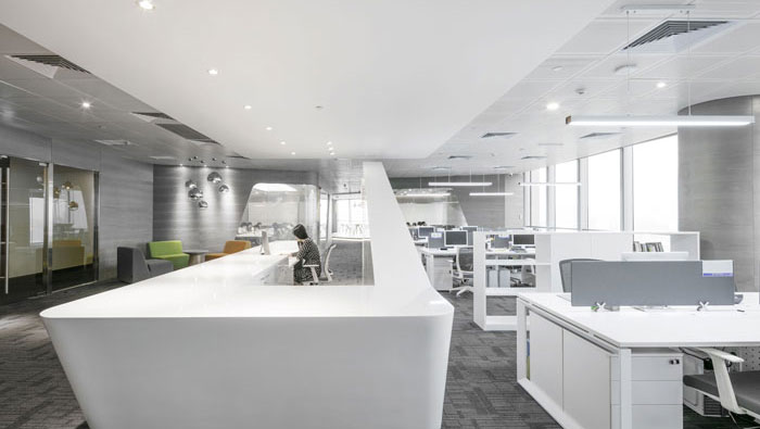 ? 辦公區(qū)域的設計:辦公區(qū)域位于前臺后方,這樣的設計是為了避免與客戶的直接接觸,雖然現(xiàn)在的設計講求簡潔,但是在此處阻隔不可避免,整個空間白色為主色調,為空間增添了一絲自然的氣息,設計師的目的就是希望打造簡潔、靈活、舒適的空間感受。