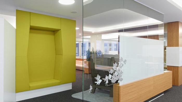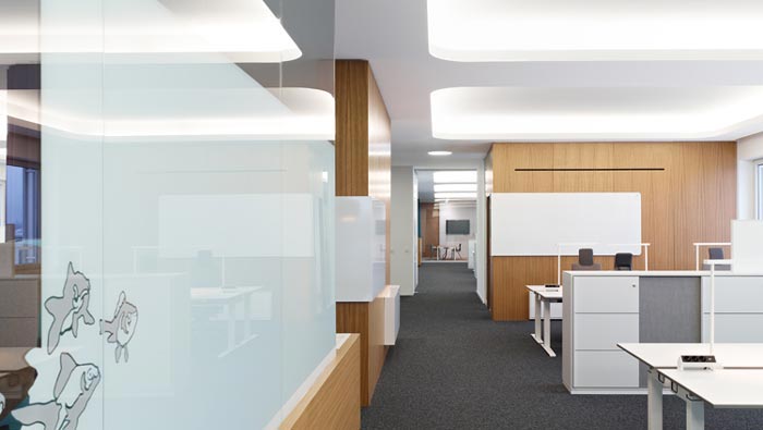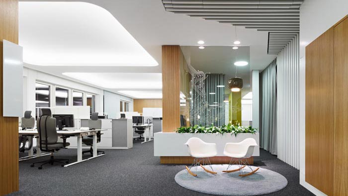 辦公區(qū)域的設(shè)計(jì):設(shè)計(jì)師在設(shè)計(jì)的時(shí)候,在采用開放式辦公的同時(shí),以儲存柜代替隔斷將每一個(gè)辦公工位進(jìn)行隔離,在設(shè)計(jì)師看來這樣的設(shè)計(jì)可以有效的彌補(bǔ)開放式的缺點(diǎn),同時(shí)讓空間看起來更加有層次感,儲藏柜的設(shè)置也很好的解決了空間容納的缺憾,真是一舉兩得。