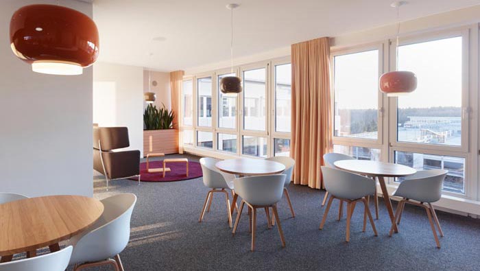 休息區(qū)域的設(shè)計(jì):設(shè)計(jì)師在設(shè)計(jì)的時(shí)候,將此處設(shè)置在向陽的空間之中,在設(shè)計(jì)師看來陽光是人類無法拒絕的誘惑,暖洋洋的陽光透過落地窗射入室內(nèi),為空間帶來了光明與溫暖,設(shè)計(jì)師希望讓員工在這樣的空間之中,可以放松自身,在暖洋洋的空間中尋找自我而。