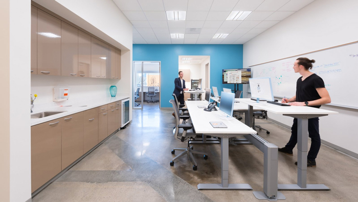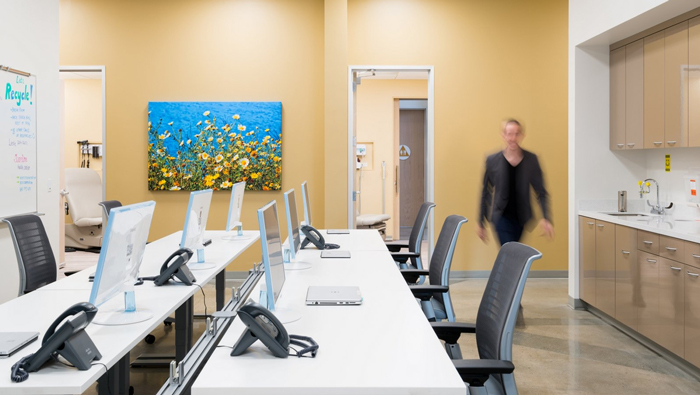 本次為醫藥辦公室裝修設計項目,設計面積在650平方左右,此處是位于加利福尼亞州山景城的新的健康設施,設計師在設計的時候,重點在于考慮如何設計出一種,符合下一代新型醫療所配套的辦公設計,這也是設計師此處設計師首要要面對的事情,旨在激發新一代努力工作,更好地生活。