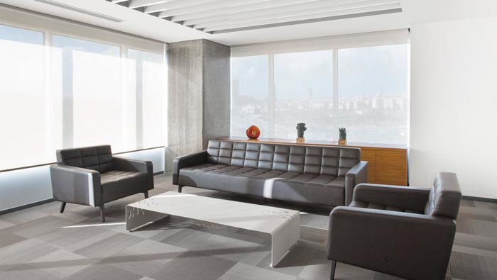 接待區(qū)域的設(shè)計(jì):此處的配置十分簡(jiǎn)單,這也是設(shè)計(jì)師化繁為簡(jiǎn)之后取得的成功,設(shè)計(jì)師希望當(dāng)客戶進(jìn)入空間的時(shí)候,感到的不是壓力而是喜悅,進(jìn)入空間首先看到的就是都市的美景,在陽(yáng)光的照射下,是那么的迷人,讓人的心也輕松不少,俯視美景沖散了身心的勞累。