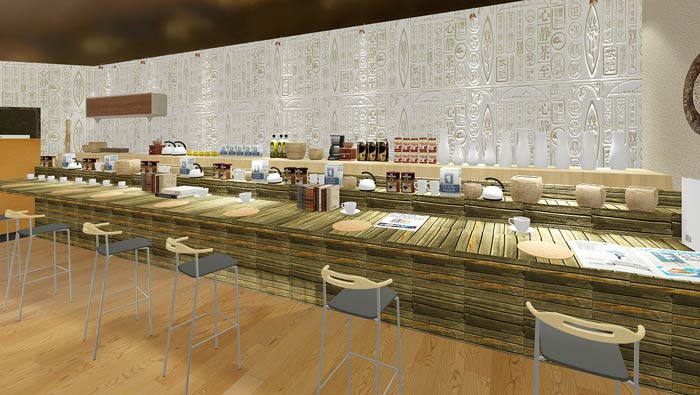 自助茶餐廳餐區(qū)設(shè)計:茶水、飲料、糕點、咖啡無一不備,這樣做是為了做到有效的融合,每個人的口味、愛好皆不同,業(yè)主要做的就是捕捉最大的公約數(shù),以此滿足各類客戶。