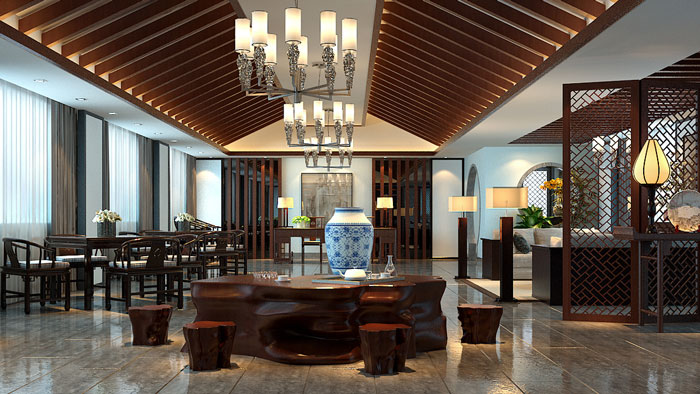 設(shè)計(jì)師考慮到建筑空間的原有風(fēng)格及投資方需求,設(shè)計(jì)師決定采用新中式手法來打造會(huì)所,而非過往高檔場所常見的歐式調(diào)性。