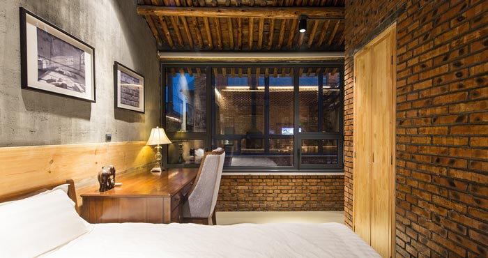 本案為景區三合院民宿設計項目,坐落在自然風景區山腳下,設計保留了傳統的北房,拆除東西兩側的格局,既開闊了視野,又盡可能保證了院內的私密性。