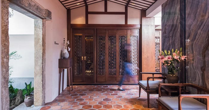 本次為民宅民宿設計項目,在設計中保留原建筑的柱網空間,同時以院落為中心,將空間劃分為四個客房區域,整體呈現中軸對稱的格局。