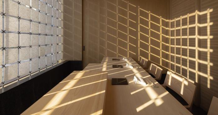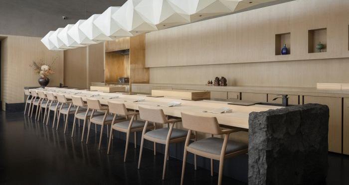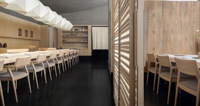設(shè)計(jì)師將味覺上的奇妙感受用空間的方式敘述,利用原生材料和光線的結(jié)合,打造出淳樸的物性和真摯的情感??臻g氛圍以質(zhì)而實(shí)綺、癯而實(shí)腴的風(fēng)格為主,靈感來源于日本的傳統(tǒng)藝術(shù)和自然景觀。