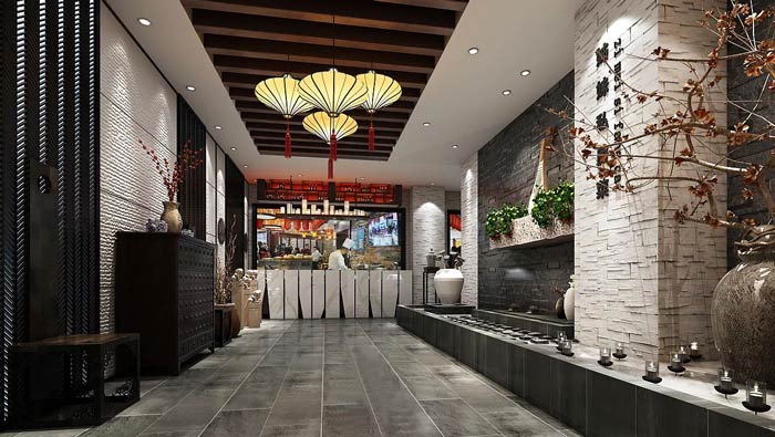 私房菜館進門區設計:這里給人的第一感覺就是安靜與舒適,一個安靜的空間在都市中是多么的難得,設計師希望客戶在這里感受到家的寧靜,在這里感受到不同的餐廳氛圍。