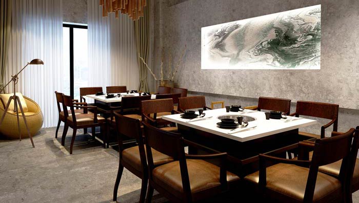 私家菜館進(jìn)門(mén)區(qū)裝修設(shè)計(jì):此處給客戶的第一感覺(jué)好似茶室,這也是設(shè)計(jì)師希望看到的,當(dāng)客戶在欣賞完美景之后,最想要的就是來(lái)一本茶水,以茶為開(kāi)端正是服務(wù)的開(kāi)端。