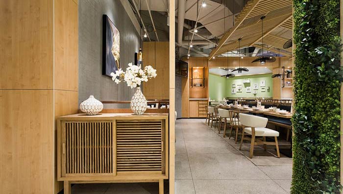 小吃店店面裝修設(shè)計(jì):綠色是空間給人的第一感覺(jué),素雅是空間給人的第二感覺(jué),設(shè)計(jì)師就是要改變?nèi)藗儯瑢?duì)傳統(tǒng)小吃臟亂差的固定形象,在這里傳統(tǒng)小吃被賦予了新的生命力。