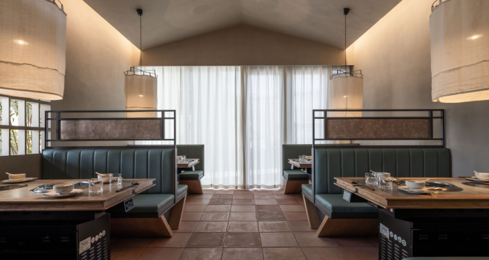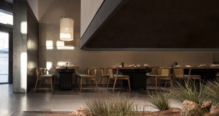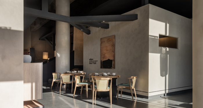 這是“侘寂煙火-如熹RUXI”餐廳的設計理念和品牌故事。餐廳以打邊爐為核心,強調“侘寂”美學的孤寂與市井煙火的對比。設計師通過將空間化零為整、打通室內邊界,營造出人與自然之間的深層關系。空間設計以“侘寂煙火”為主題,運用開放界面和透明封閉界面,將自然光引入作為主要照明方式,創造出豐富的光影韻律。設計希望通過空間的沉浸感讓食客放松下來,享受當下。整體空間設計質樸自然,融入了水墨元素,增加了調性和趣味性。通過在“侘寂”中感受人間煙火氣,設計希望重新尋找通往松弛和諧的理想生活。