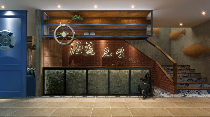 主題餐廳海鮮區設計:有海盜的地方就少不了海盜船,同時海盜船也往往帶著神秘的色彩,譬如來無影、去無蹤,這里讓客戶開心的不止是美食,而是真實的環境。