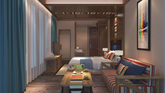 本次為主題概念酒店裝修設計項目,設計師在于客戶的交流中,了解到客戶希望打造一個休閑、遠離都市、潮流的概念酒店,這就對設計師提出了一個新的難題,就是如何去把握這樣的想法,最后設計師在考察過現場之后,與客戶邊走邊交談,最后設計師將設計理念定位于“個性與原創、舒適與環保”。